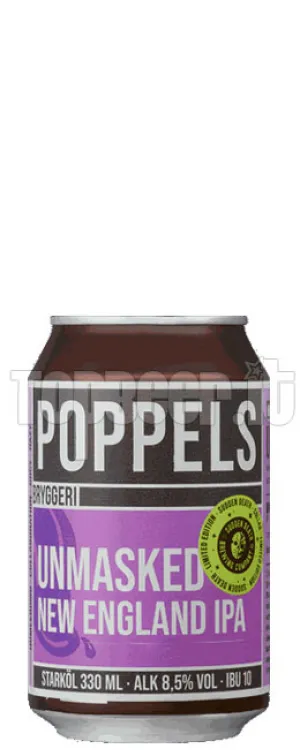 Unmasked è una birra in stile NEIPA realizzata in collaborazione tra Poppels e il birrificio tedesco Sudden Death. Olfatto che propone un bouquet aromatico fruttato, composto da agrumi e frutta tropicale. In bocca la morbida dolcezza iniziale lascia subito il passo all'amaro tropicale e agli agrumi. Corpo e frizzantezza nella media.